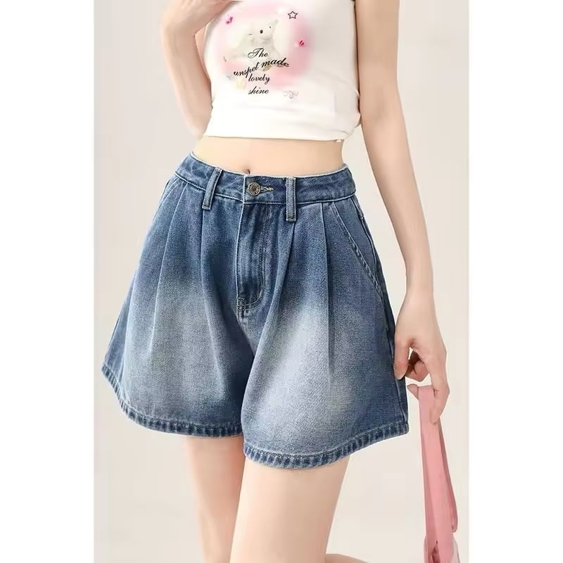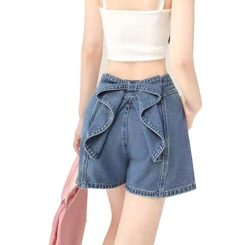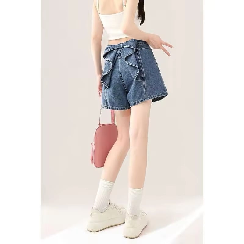 バックスタイルがリボンデザインになったデニムショートパンツ。