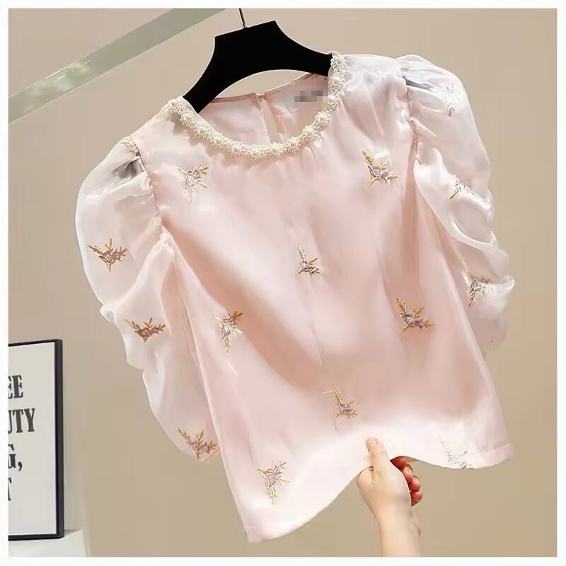 フラワー刺繍パールブラウス(一ヶ月程でお届け)