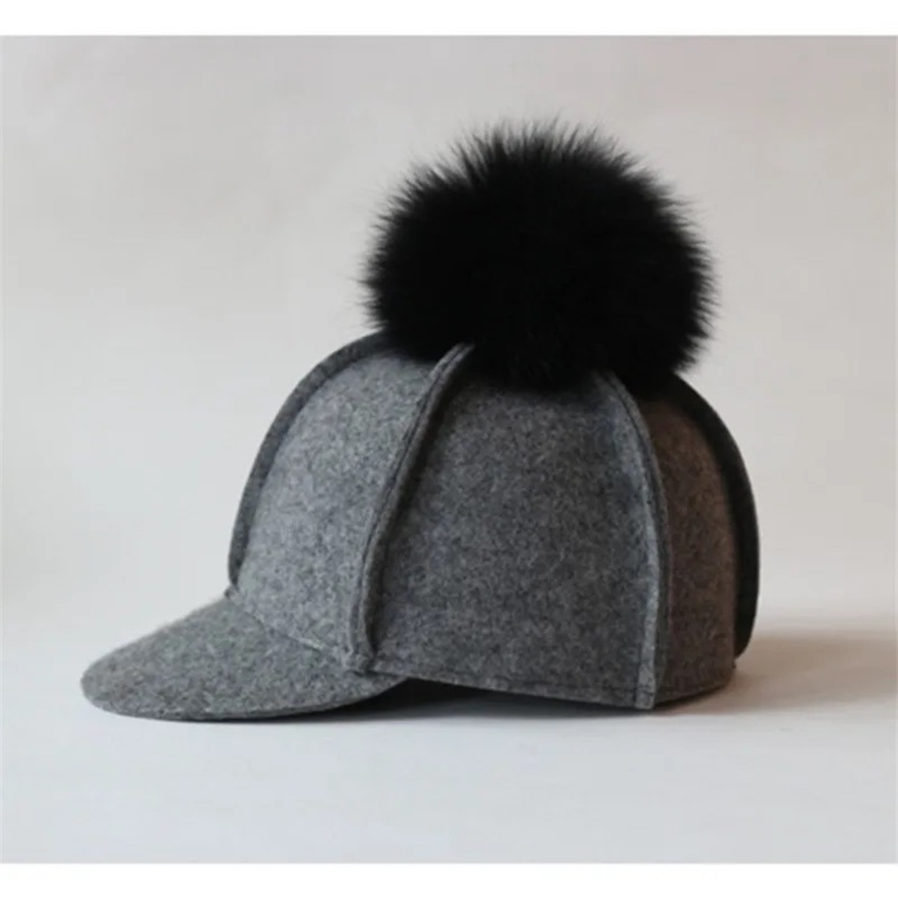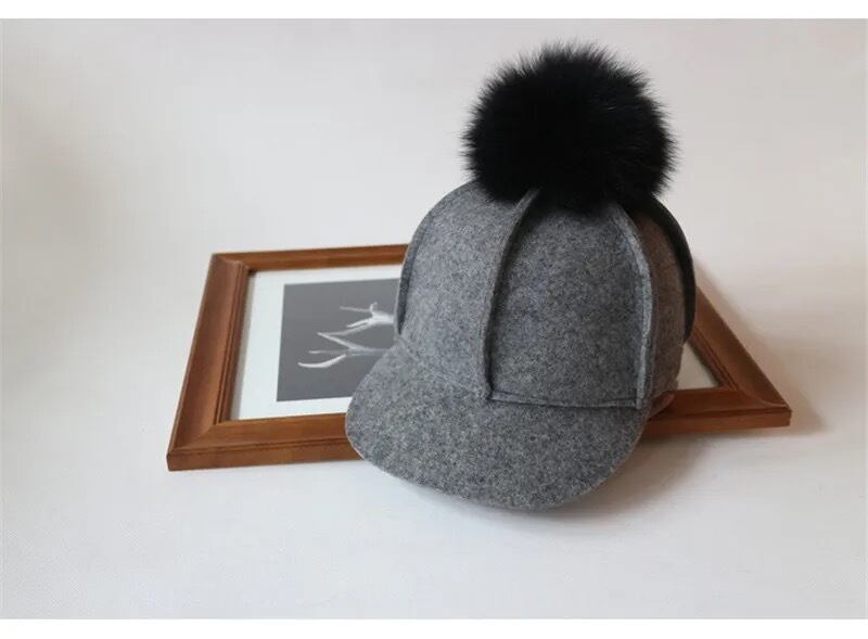ウールフェルトお素材にファーポンポンがアクセントのキャップ。