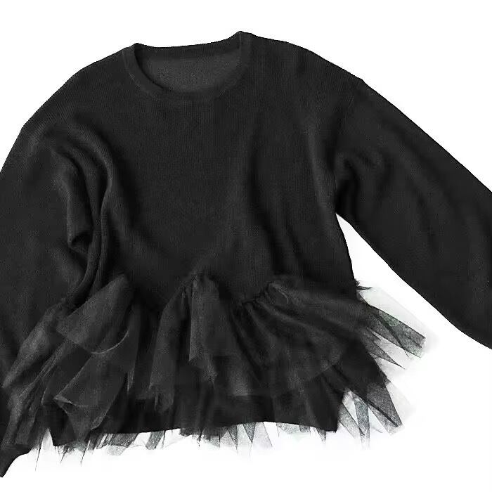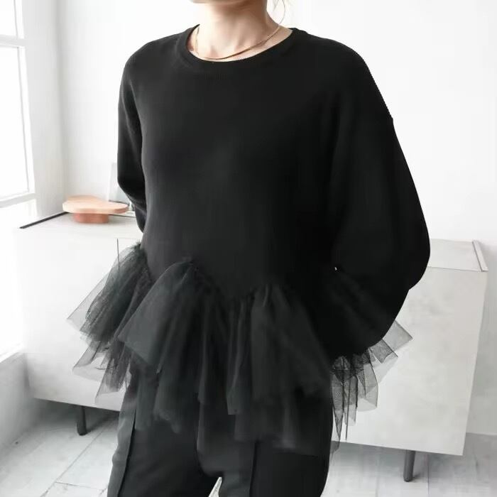 裾チュールが華やかなニット。